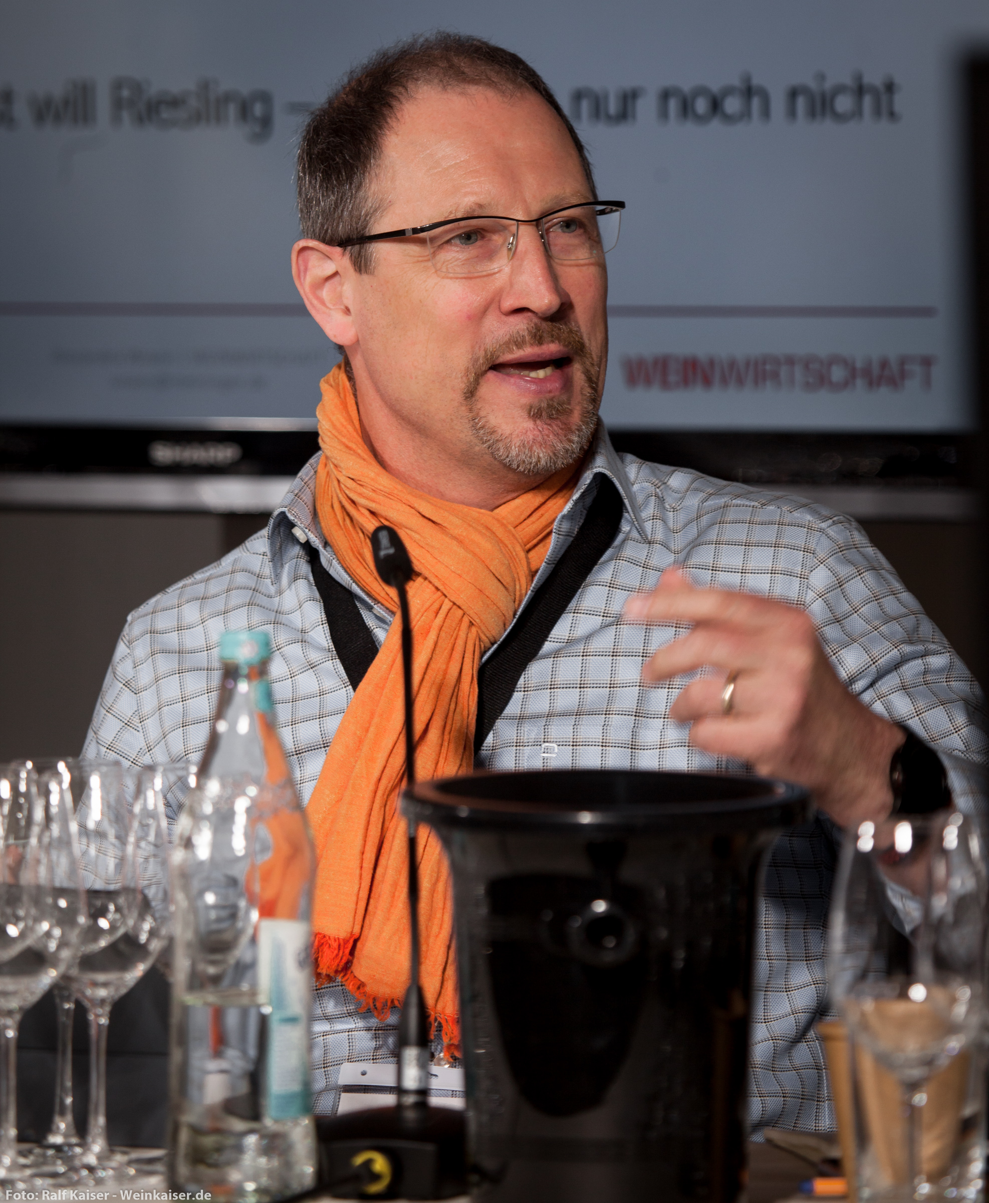 Alexandra Wrann, Nachfogerin von Dr. Hermann Pilz als Chefredakteurin von Meiningers Weinwirtschaft, moderierte eine (für eine solche Veranstaltung) außergewöhnlich spannende Podiumsdiskussion zum Image des Rieslings beim Verbraucher: Riesling – Ein Bestseller am Point-of-Sale?. Hier kamen nicht nur die weiteren Podiumsgäste Steffen Schindler (DWI), Torsten Kiss (Schlumberger), H.O. Spanier (Battenfeld-Spanier) und Dirk Würtz (St. Antony) zu Wort, sondern auch diverse Winzer, Gastronomen und Händler aus dem hochkarätig besetzten Publikum. Ich befürchte während dieser Diskussion ist der Begriff Grauburgunder mindestens so oft gefallen wie das eigentliche Thema Riesling…